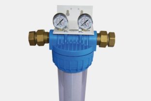 Filtro per il trattamento di acque potabili in generale a ph neutro, con by pass integrato. Versione dritti 1″.
