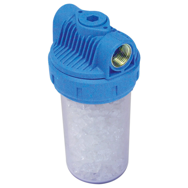 Protection filter for washing machines and dishwashers. Its action reduces the formation of scale in pipes and heating coils. Polyphosphate feeder for boilers.