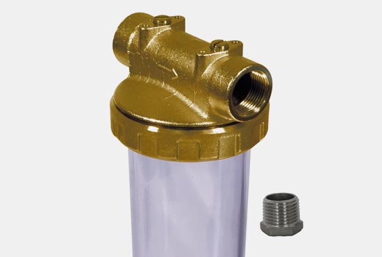 Suitable for treatment of drinking water in general with neutral ph. High standard level of mechanical resistance and durability. Polyamide bowl with 1/2” brass waste discharge outlet.