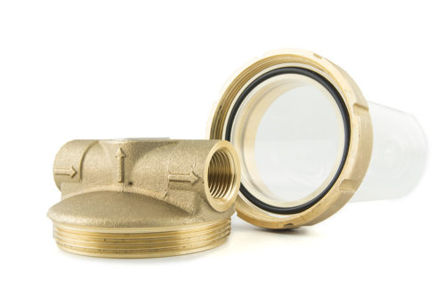 Filtro per il trattamento di acque potabili in generale a ph neutro, con by pass integrato. Versione dritti 1″.