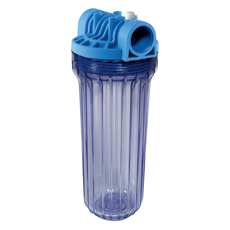 Contenitore ad uso domestico e tecnologico per il trattamento di acque potabili in generale a ph neutro. Con vaso in SAN trasparente