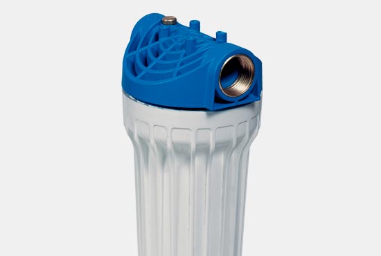 Contenitore per il trattamento di acque potabili in generale a ph neutro. Con vaso in SAN trasparente.