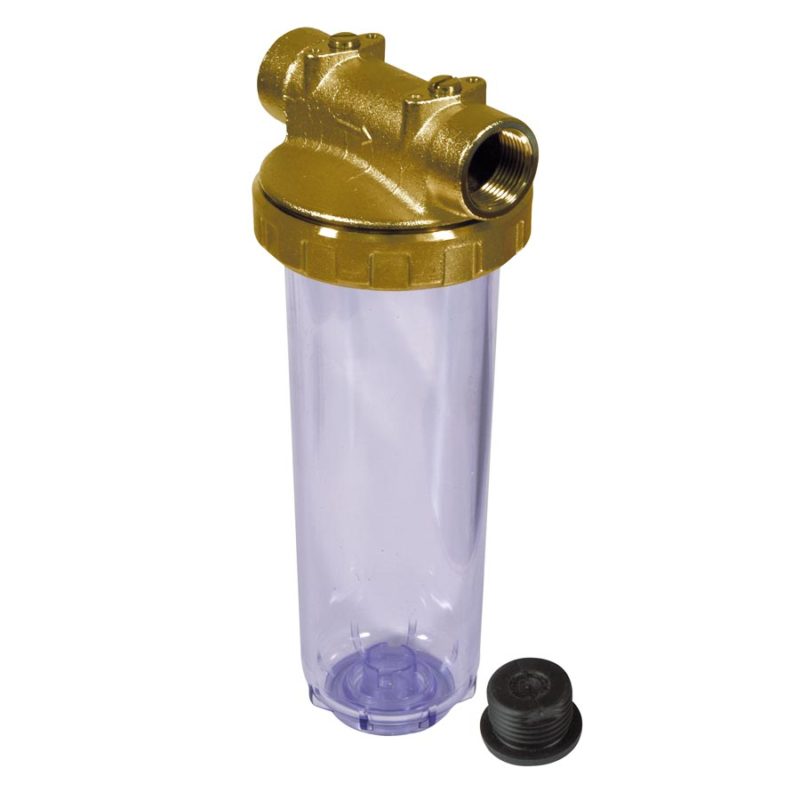 •Con vaso in SAN trasparente con foro per scarico in ottone da 1/2”