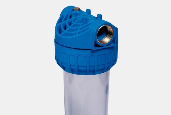 Contenitore per il trattamento di acque potabili in generale a ph neutro. Con vaso in SAN trasparente.